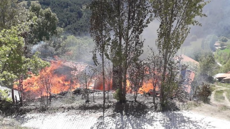 Çorum’un İskilip ilçesine bağlı Göl köyde çıkan yangında bir ev, bir samanlık ve ahır yandı. Edinilen bilgilere göre, Recep Abaz’a ait evin çatı katında bilinmeyen bir nedenle sabah saatlerinde yangın çıktı. Kısa sürede büyüyen alevler tüm evi kapladı. Evden dumanlar yükseldiğini gören vatandaşlar itfaiyeyi arayarak yardım istedi. İhbar üzerine olay yerine İskilip Belediyesi ve Orman İşletme Müdürlüğü itfaiye ekipleri ile sağlık görevlileri sevk edildi. Kısa sürede yangına müdahale eden ekipler yangını kontrol altına alarak söndürdü. Yangında can kaybı ve yaralanma olmazken Recep Abaz’a ait ev, samanlık ve ahır tamamen yandı. Yangınla ilgili başlatılan soruşturma sürüyor. (İHA)
