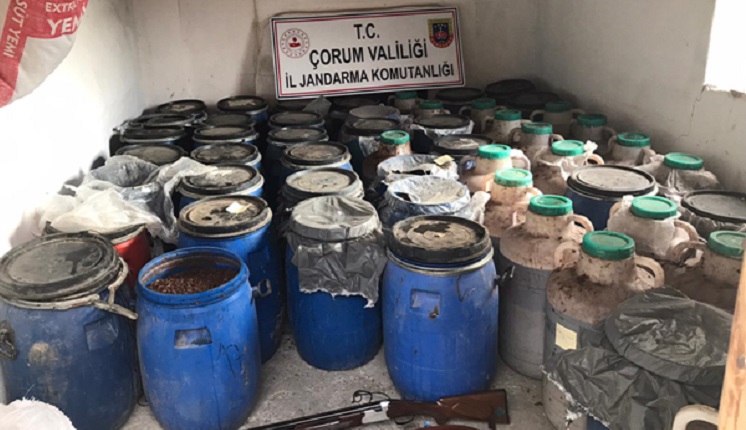 Son Güncelleme: 22 Ekim 2020 14:19 Çorum İl Jandarma Komutanlığı tarafından düzenlenen operasyonda 8 bin 840 litre kaçak içki ele geçirildi. İl Jandarma Komutanlığınca, halk sağlığını olumsuz yönde etkileyen ve ölümlere neden olan kaçak içki ile mücadele yönelik çalışmalar sürüyor. Bu kapsamda Laçin ilçesine bağlı Gökgözler köyünde düzenlenen operasyonda kaçak/sahte alkollü içki imal edildiği tespit edilen iki ayrı şüpheliye ait ev ve eklentilerinde yapılan aramada 8 bin 820 litre fermente içki (şarap), 20 litre distile içki (rakı), 2,8 kilo anason, 1 adet distilasyon sistemi ve 1 adet ruhsatsız av tüfeği ele geçirildi.