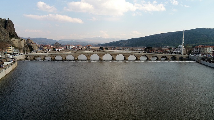 Son Güncelleme: 26 Mart 2019 14:11 1485 yılında yapımına başlanan ve 5 yılda tamamlanan İpekyolu üzerine inşa edilen tarihi Koyunbaba Köprüsü, Karayolları Genel Müdürlüğünce 2014 yılında restorasyona alınmıştı. Yapılışı gibi restorasyon çalışmaları da 5 yılda tamamlanan köprünün ırmağın taşıdığı toprakla toprak altına kalan kemerleri yeniden gün yüzüne çıkartılarak geçmişteki ihtişamlı görüntüsüne yeniden kavuştu. Anadolu’nun en büyük tarihi köprüleri arasında yer alan Koyunbaba, 250 metre uzunluk, 7 metre genişlik, 25 metre yükseklik ve 18 kemere sahip.