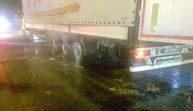 Son Güncelleme: 27 Ağustos 2018 19:52 Edinilen bilgilere göre, Samsun istikametinden İstanbul istikametine seyir halinde olan 58 AAD 213 plakalı tır, lastiklerinden alev almaya başladı. Yoldan geçen diğer sürücüler kornalarla şoförü uyarmaya çalışsa da başarılı olamadı. Yaklaşık 2 kilometre lastikleri yanar vaziyette yol alan tır Osmancık girişinde sürücülerin çabalarıyla durdurularak yol kenarındaki benzinliğe girdi. Saman yüklü tırdaki yangının büyüyerek samanlara sıçramasına engel olmaya çalışan vatandaşlar itfaiye ekipleri gelene kadar yangına söndürücü tüplerle müdahale etti. Olay yerine gelen itfaiye ekipleri müdahale etmek üzereyken samanların ıslanmamasını isteyen tır sürücüsü itfaiye ekiplerine zor anlar yaşattı. Ekiplerin dikkatli müdahalesi ile samanlar ıslanmadan ve yangın büyümeden söndürüldü. (İHA)