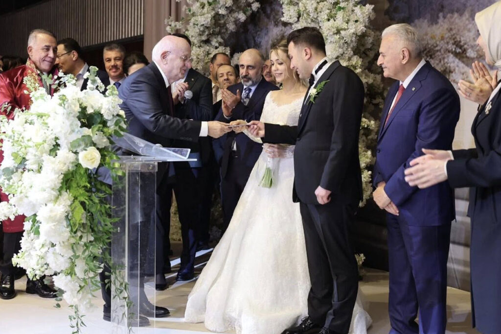 İstanbul’da düzenlen nikah törenine son Başbakan Binali Yıldırım, TBMM 27. Dönem Başkanı İsmail Kahraman, Aile ve Sosyal Hizmetler Bakanı Mahinur Özdemir Göktaş, KADEM Mütevelli Heyet Başkanı Sümeyye Erdoğan Bayraktar, eski İçişleri Bakanı Süleyman Soylu başta olmak üzere çok sayıda AK Parti Milletvekili ile eski bakanlar da katıldı. Genç çiftin düğününe Çorum Belediye Başkanı Halil İbrahim Aşgın ile AK Parti Çorum İl Başkanı Yakup Alar, Çorum önceki dönem milletvekillerinden Murat Yıldırım, NETPAŞ Kum Demir Çimento sahibi Fatih Şahinbaş ile birlikte çok sayıda partili katıldı.