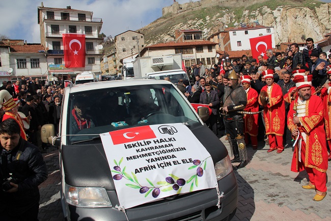 Cumhuriyet Meydanında düzenlenen törende bir konuşma yapan İskilip Belediye Başkanı Recep Çatma, İskilip halkının da desteğiyle 20 gün önce Genelkurmay Başkanı Org. Hulusi Akar’a bir yazı göndererek, İskilipliler olarak Osmanlı sefer yemeği olan İskilip Dolması’nı Afrin’de Mehmetçiğe ikram etmek istediklerini ve bu konuda destek beklediklerini ifade ederek, “Yazmış olduğumuz yazı bugün itibariyle bugün gerçekleşiyor” dedi. Türkiye’nin zor bir süreçten geçtiğini dile getiren Başkan Çatma, bütün Hıristiyan, Ermeni, Yahudi aleminin Türkiye’ye diz çöktürmek için büyük gayret ve çaba sarf ettiklerini söyledi.