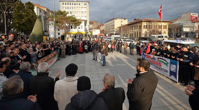 Çorum Filistin Platformunca organize edilen programda vatandaşlar, Hürriyet Meydanı’nda bir araya gelerek İsrail ablukası altındaki Mescid-i Aksa ile Gazze halkının özgürlüğü için dua etti. Çorum İlim Yayma Cemiyeti Başkanı Şahin Çalışkanoğlu, burada gazetecilere yaptığı açıklamada, Müslümanların ilk kıblesi olan Mescid-i Aksa’nın uzun yıllardır mağdur edildiğini söyledi.