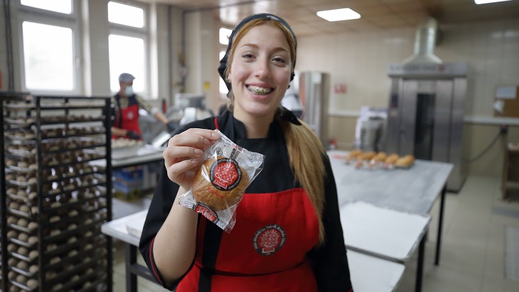 Fırında 10 öğrencinin çalışıp eğitim gördüğünü anlatan Sökmen, “10 öğrencimizle günlük 6 bin tam buğday ekmeği üretiyoruz. Günlük 5 bin kişilik yemek. Kafeteryamız için günlük 150 kilograma yakın kuru pasta üretilmektedir. Aylık 2 bin 500 yaş pasta üretilmektedir. Bunların tamamı okulumuzdaki öğrenci ve öğretmenler tarafından yapılmaktadır.” diye konuştu. Sökmen, tam buğday ekmeğinin kan şekerini dengelemesi, demir, magnezyum içermesi, uzun süre tok tutmasından dolayı kilo kontrolüne yardımcı olması, B vitamini açısından zengin olması gibi nedenlerle insan sağlığı açısından faydalı bir besin kaynağı olduğunu sözlerine ekledi. 12. sınıf öğrencisi Azra Karslı da daha önce tam buğday ekmeği tüketmediğini, fırında üretmeye başlayınca daha sağlıklı olduğunu öğrendiğini ve tüketmeye başladığını anlattı.