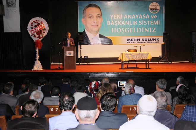 Konuşmasında başkanlık sistemiyle ilgili bilgi veren Külünk, başkanlık sisteminin parlamenter sistemden daha demokratik bir yönetim biçimi olduğunu savundu. Külünk, Türkiye’de Cumhurbaşkanına verilen yetkinin ABD’de Başkan Obama da dahi bulunmadığını ileri sürdü. Ak Parti İstanbul Milletvekili Metin Külünk “Toplumda öyle bir algı inşa etmek istiyorlar ki başkanlık sistemi geldiğinde tek kişilik bir yönetim biçiminden bahsediyorlar.Oysa başkanlık sistemi çabukluktur. Başkanlık sistemi dinamizmdir,yasamanın denetimine açık olan yürütmenin pratikliğidir. Başkanlık sistemi halka doğrudan hesap vermedir. Başkanlık sistemi Türkiye´nin daha iyi yönetilebilir hale getirilmesidir. Başkanlık sisteminde egemenlik kayıtsız şartsız millete ait olacaktır.” dedi. Modern ulus devletlerin benimsediği üç demokratik yönetim şekli olduğunu ifade eden Külünk “İmparatorluklar çağı bittikten sonra dünya modern ulus devletler üzerinden şekillendi. Ulus devletler demokrasi ile tanıştıktan sonra üç farklı modelle yönetilir oldular. Bunlar parlamenter sistem, yarı başkanlık sistemi ve başkanlık sistemi. Demokrasiyle buluşmuş ülkeler, yani yönetimlerin meşruiyetini sandıktan aldıkları modelle yönetilen ülkeler, bu üç sistemle buluşmuştur. Üç modelde de belirleyici güç sandığın kendisidir. Üçünde de yönetim meşruluğunu sandıktan alır. Demek ki başkanlık sistemini konuşurken demokratik bir sistemi konuşuyoruz. Krallığı, diktatörlüğü konuşmuyoruz. Halka rağmen bir yönetim biçimini konuşmuyoruz. Belirleyici gücün hemparlamenter sistemden hem de yarı başkanlık sisteminden daha öte halk olduğu bir modeli konuşuyoruz.” dedi. Başkanlık sisteminin koalisyonlar mantığını ortadan kaldıracağını vurgulayan Külünk, istikrarsızlığın ortadan kalkacağı bir sisteme geçileceğini belirterek şunları söyledi: “Başkanlık sisteminde yasama ve yürütme yetkisi kesin çizgilerle birbirinden ayrıdır. Parlamenter sistemde ise iç içedir. Parlamenter sistemde siz milletvekili seçiyorsunuz, Cumhurbaşkanı başbakanı atıyor. Siz başbakan seçmiyorsunuz. Başbakanı Anayasadan aldığı yetki ile Cumhurbaşkanı tayin ediyor. Parlamenter sistemde 276 oyu bulursanız bütçeyi ret verirsiniz ve hükümeti düşürebilirsiniz. Veya bir gen soru verilir. Gen soruda bir bakan 276 bulunduğunda düşürülebilir. Çünkü parlamenter sistemde yasama ile yürütme iç içe olduğundan yasama yürütmenin üstünde baskı unsurudur, müdahil unsurudur. Yürütme de bir başka yönden yasamanın üstünde baskı unsurudur. Ancak başkanlık sisteminde bunların hiç birisi yok. Ne gen soru var, ne hükümetin düşürülmesi var. Başkan, parlamentonun süresine karışamaz, parlamento da başkanın görev süresine karışamaz. Bu neyi getiriyor? İstikrarsızlığı ortadan kaldırıyor. Koalisyonlar mantığını ortadan kaldırıyor. Demokrasi başkanlık sisteminde kemale eriyor. Çünkü başkanlık sisteminde yürütme, meşruiyetini doğrudan halktan alıyor.”