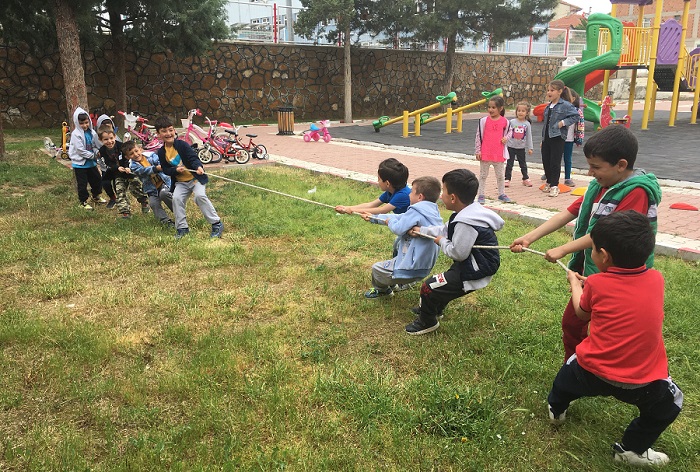 Çorum’un Ortaköy ilçesi 100. Yıl İlkokulu’nda “okul dışarıda günü” kapsamında öğrenciler açık havada oynamanın ve öğrenmenin tadını çıkarttılar.