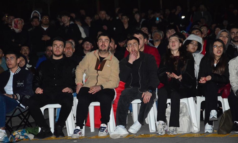 Çorum’da, A Milli Futbol Takımı’nın 2026 FIFA Dünya Kupası Avrupa Elemeleri finalinde Kosova ile karşı karşıya geldiği mücadele sırasında vatandaşlar tek yürek oldu. Çorum Belediyesi tarafından Kadeş Barış Meydanı’nda kurulan dev ekranın etrafında toplanan yüzlerce vatandaş, milli heyecana tek yürek olarak ortak oldu. Saat 21.45’te başlayan ve ellerindeki Türk bayraklarıyla Milli Futbol Takımı’na destek veren vatandaşlar, karşılaşmanın arıdından büyük sevinç yaşadı.