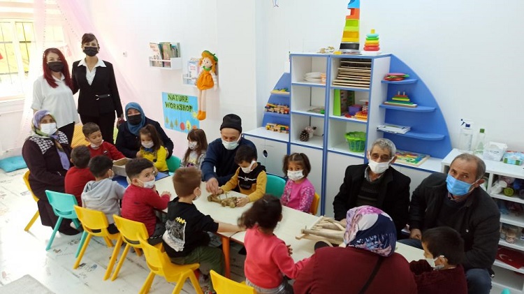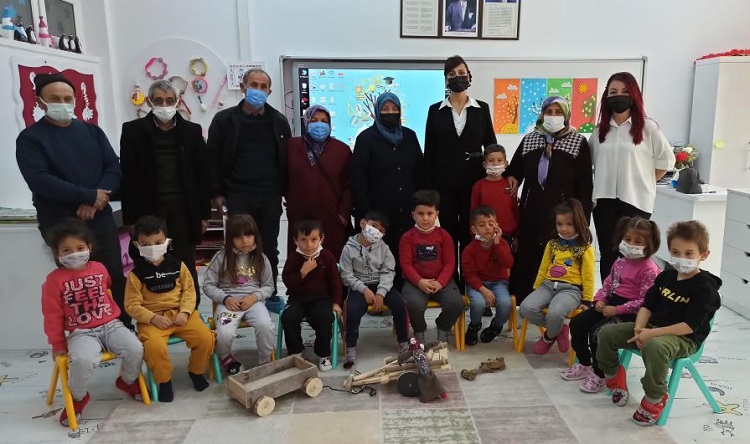 Merkez 75.Yıl Cumhuriyet Ortaokulu anasınıfında başlatılan “Dedem Yapar Oynarım, Ninem Söyler Dinlerim” projeyle ana sınıfı öğrencileri, haftanın belirli günlerinde dedeleri ve nineleriyle birlikte eğitim alıyor. Şekerpancarından traktör, tahtalardan kağnı, araba ve bebekler yapan dedeler ve nineler torunlarıyla keyifli vakit geçirirken kuşaklar arası etkileşime de katkıda bulunuyor. Dedelerinin oynadığı oyuncakları, dedeleriyle yapma fırsatı buluyor. Kuruculuğunu Yelda Kuşcu Kılıçarslan ve Atanur Yılmaz’ın yaptığı projede, Türk kültürünü ve değerleri koruma, geleneksel çocuk oyunlarının değerler eğitimi içerisinde genç nesle aktarılması hedefleniyor.