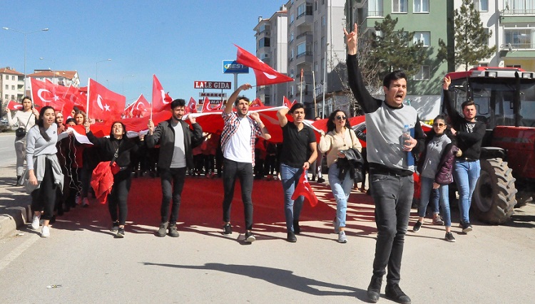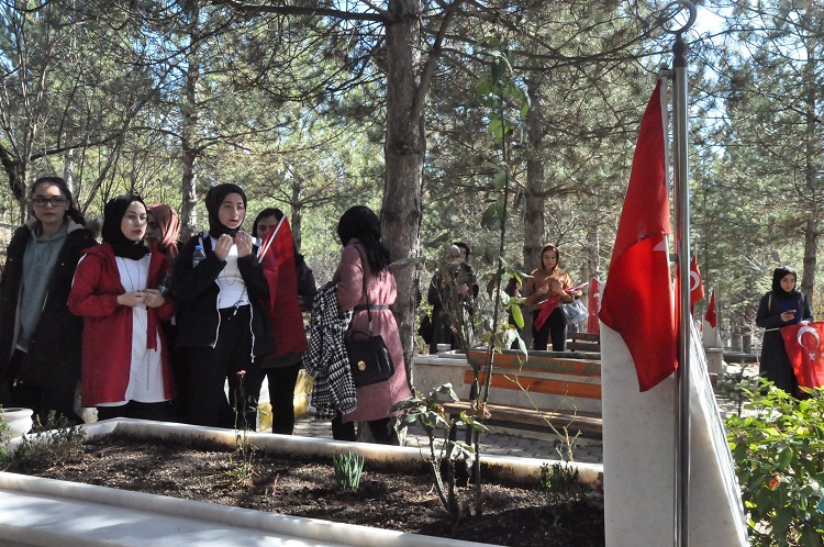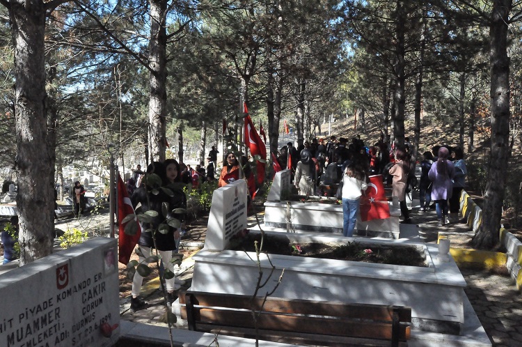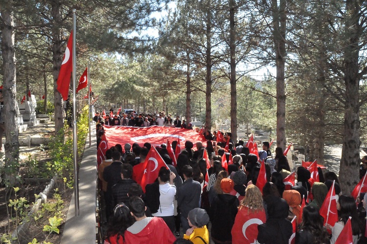 Son Güncelleme: 3 Mart 2020 15:04 Hitit Üniversitesi Meslek Yüksek Okulu (MYO) öğrencileri İdlip’de şehit düşen 36 askerimiz için yürüyüş düzenledi. Sungurlu MYO Kampüsü’nden başlayan yürüyüş öğrenciler “Şehitler ölmez vatan bölünmez” sloganları atarak Sungurlu şehitliğine kadar yürüdü. Şehitlikte saygı duruşunda bulunulması ve İstiklal Marşı’nın okumasıyla etkinlikte öğrenciler adına bir konuşma yapan Buse Algül, “27 Şubat 2020 tarihinde İdlib’de birlik ve beraberliğimizi hedef alan, terör örgütlerine karşı yürütülen mücadelede, 34 kahraman Mehmetçiğimizi hain bir eylem sonucu şehit vermiş bulunuyoruz. Acımız çok büyük, hüznümüz dağlar kadar ama boynumuzu bükmüyoruz. Kor ateş de olsa, hüznümüzü yüreğimize gömecek, gözyaşımızı içimize akıtacağız, hainleri sevindirmeyeceğiz. Kin yuttuk kan kusturacağız. Net biçimde ifade ediyoruz; kazanamayacaklar. Kendi karanlıklarında eriyip gideceklerdir. Kendi kanlarında boğulacaklardır. Hiçbir zaman ümitsiz olmadık, olmayacağız. Şiddet sarmalına teslim olmadık, hiçbir zaman da teslim olmayacağız. Bizlere bu acıyı yaşatanlar, bilsinler ki bunun bedelini çok ağır biçimde ödeyeceklerdir. Aziz şehitlerimiz! Kutsal vatan topraklarının bölünmez bütünlüğü uğruna ölümü göze alarak yaptığınız ulu görev sonucunda, şanlı bir tarih yazarak, şehadet mertebesine ulaştınız. Tehditler karşısında bu büyük millet, şehit olmayı her zaman bir onur ve gurur kaynağı olarak görmüştür. Türkiye Cumhuriyeti’nin varlığına yönelik her türlü tehdide karşı, sarsılmaz inancımıza, ebedi kaynak teşkil edecek ve bu ateş yüreklerimizde daima yanacaktır” ifadeleri kullanıldı. Konuşmanın ardından asker andı ve şehit askerlerin isim ve memleketleri okunarak öğrenciler hep bir ağızdan ‘burada’ diye bağırdı. Daha sonra tüm şehitler için edilen duanın ardından program sona erdi. (İHA)