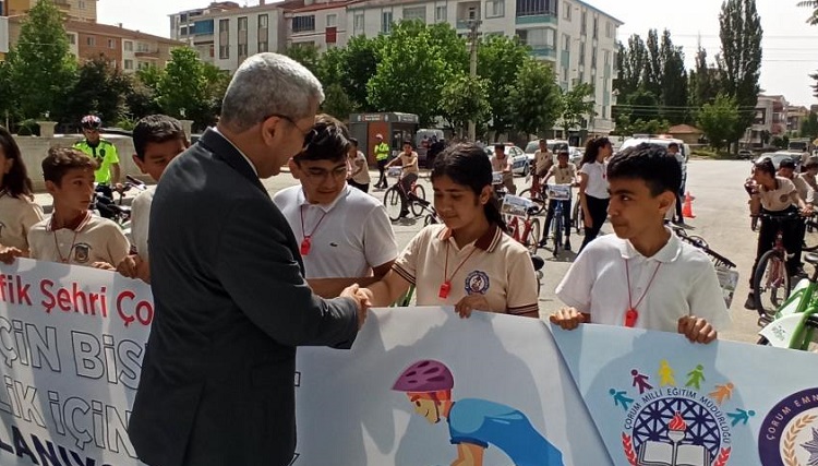 Trafik polislerimiz tarafımızdan okulumuzda öğrencilere eğitim verildi. Bu faaliyet yıl boyunca devam edecek. Bugün 20 öğrencimizle başladığımız uygulama çerçevesinde hedefimiz 700 öğrenciye ulaşmak. Bundan sonraki süreçte de öğrencilerimizi bilgilendirerek sağlıklı ve güvenli bisiklet kullanımlarını sağlamak amacımız” dedi. Gülser’in konuşmasının ardından Trafik Denetleme Şube Müdürü Bünyamin Demir ve öğrenciler polislerle birlikte okul çevresinde bisiklet turu attılar. (İHA)