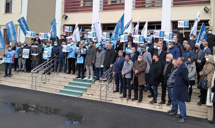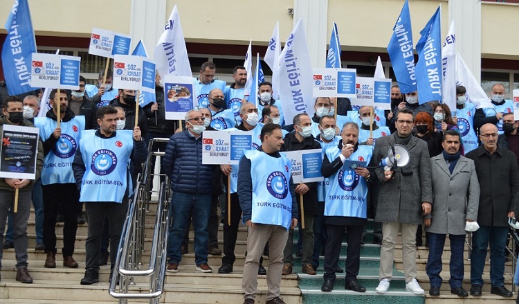 Türk Eğitim-Sen, ülke genelinde eş zamanlı Öğretmenlik Meslek Kanunu ile ilgili eylem yaptı. Çorum’da da Türk Eğitim Sen Çorum Şubesi, Milli Eğitim Müdürlüğü önünde meslek kanunun yanı sıra eğitim çalışanlarının ekonomik kayıplarının telafi edilmesi için taleplerini anlattı. Türk Eğitim Sen Çorum Şubesi, 2022 bütçe görüşmelerinin tamamlanmasıyla birlikte öğretmenlik meslek kanunu TBMM gündemine getirilmesi ve yasalaştırılması için eylem yaptı. Türk Eğitim Sen bugün ülke genelinde eş zamanlı Öğretmenlik Meslek Kanunu ile ilgili eylem yaptı. Çorum’da da Türk Eğitim Sen Çorum Şubesi, Milli Eğitim Müdürlüğü önünde meslek kanunun yanı sıra eğitim çalışanlarının ekonomik kayıplarının telafi edilmesi için taleplerini açıkladı. Öğretmenlik mesleğinin saygınlığını artıran ve mesleğin statüsünü sağlam bir zemine kavuşturacak bir meslek kanunu talep ettiklerini vurgulayan Türk Eğitim-Sen Çorum Şube Başkanı Selim Aydın, “Öğretmenlik Meslek Kanunu’nu desteklediğimizi ifade etmiştik. Tabi bu desteğimiz, devlet memuru olmamız hasebiyle sahip olduğumuz mevcut hak ve kazanımlarımızın baki kalması kaydıyla olacaktır. Öte yandan hazırlıkları tamamlandığı söylenen Meslek Kanunu’nun eğitimin paydaşlarıyla henüz paylaşılmamış olmasını da anlayabilmiş değiliz. Kapalı kapılar arkasında süreç yürütülmesini kabul etmiyoruz. Meslek Kanunu’nun bir an önce paydaşlar ve kamuoyu ile paylaşılması noktasında Bakanlık’tan bir an önce adım atmasını bekliyoruz” ifadelerini kullandı. Meslek Kanunu’nda olmasını talep ettikleri hususları anlatan Aydın, şunları söyledi: “Halen öğretmenler kadrolu, sözleşmeli, ücretli olarak üç modelle istihdam edilmektedir. Aynı işi yapan öğretmenlerin farklı statüde istihdamı hem eğitimimize vurulan bir darbedir hem de öğretmenlik mesleğinin geleceğini zedelemektedir.