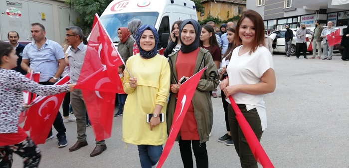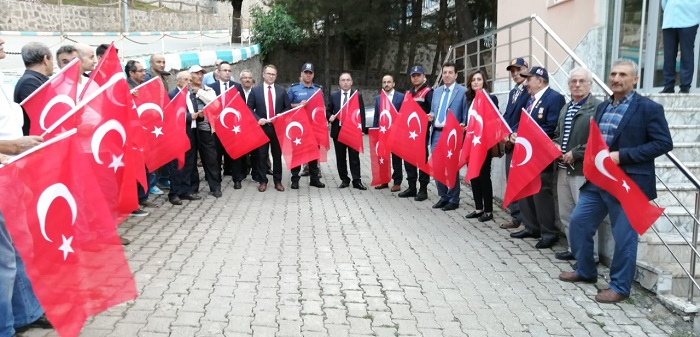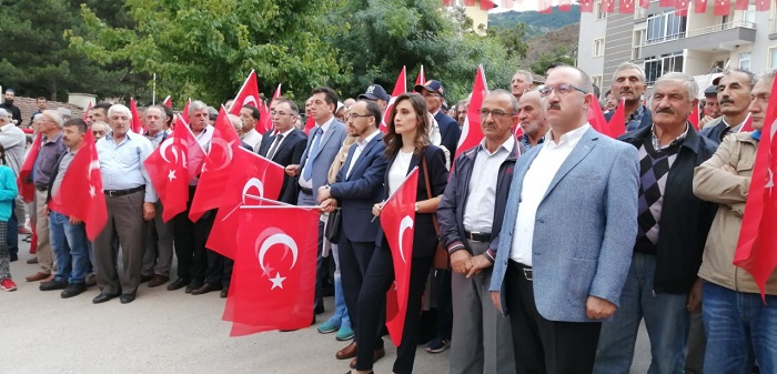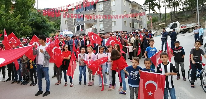 Son Güncelleme: 17 Temmuz 2019 11:36 Milli birlik ve beraberlik ruhuyla kenetlenen Oğuzlar’da Belediye tarafından Oğuzlar esnafına bayrak hediye edilerek tüm işyerleri ayyıldızlı bayrakla donandı. Kaymakamlık önünden Cumhuriyet Meydanına yapılan Birlik ve Beraberlik yürüyüşünün adından Cumhuriyet Meydanında gerçekleşen mitingte Oğuzlar Kaymakamı Hacı Asım Akgül, Oğuzlar Belediye Başkanı Muzaffer Yıldırım’ın konuşmalarının ardından Kur’an-ı Kerim tilaveti gerçekleştirildi. Oğuzlar Belediyesi tarafından gelenlere çay ve çorba ikramında bulunuldu. Birlik ve beraberliğin yarattığı coşkuyla Oğuzlar halkının kenetlendiği mitingte Oğuzlar Belediye Başkanı Muzaffer Yıldırım; “Halkın milli birlik ve beraberlik ruhu ile verdiği mücadelenin hiçbir hain girişime izin vermeyişinin 3. yıldönümünde tüm şehitlerimizi rahmet ve minnetle anıyor gazilerimize saygılarımı sunuyorum. Ülkemizin milli birliğine, bölünmez bütünlüğüne pranga vurmaya kalkışan terör örgütlerinin 15 Temmuz 2016 gecesi caddeleri, sokakları kan gölüne döndürmeye çalışmalarını, Milli iradenin temsilcisi olan TBMM’ye saldırmalarını, halkın silahını halka doğrultup onları şehit edişini unutmadık, unutmayacağız.” dedi.