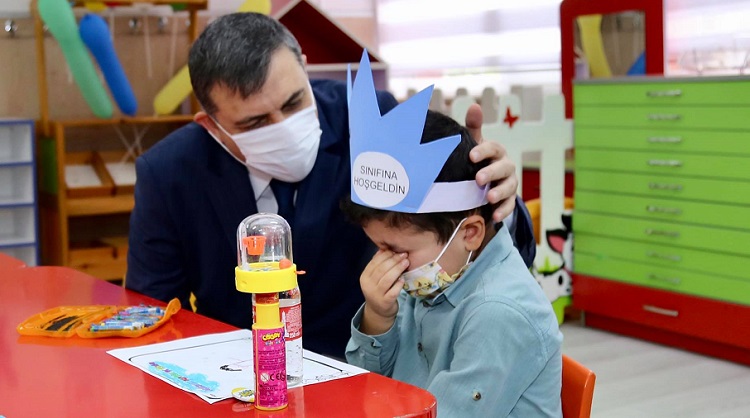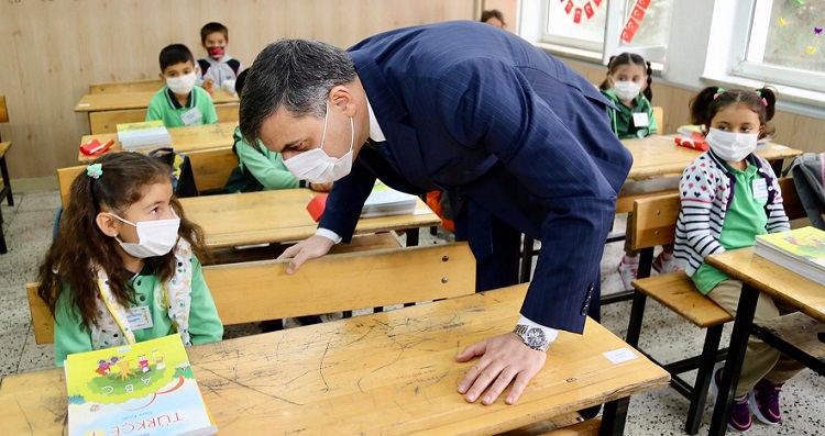 Son Güncelleme: 21 Eylül 2020 13:08 Çorum’da Milli Eğitim Bakanlığınca (MEB), okullarda yüz yüze eğitim, seyreltilmiş uygulamalarla ana sınıfı ve ilkokul 1’inci sınıflarda başladı. Çorum Valisi Mustafa Çiftçi, 19 Mayıs İlkokulu’nu ziyaret ederek, ders başı yapan ana sınıfı, ilkokul 1’inci sınıf öğrencileri ve velilerle bir araya geldi. Okulda yeni tip koronavirüs (Kovid-19) salgınıyla mücadele kapsamında alınan tedbirleri inceleyen Çiftçi, öğrencilere Çorum Belediyesince hazırlanan okul seti hediye etti. Çiftçi, ziyaretin ardından gazetecilere, salgınla ilgili okullarda gerekli önlemlerin alındığını, velilerin güvenle çocuklarını okula gönderebileceğini belirterek, “Çocuklarımızın hepsi maskeyle sınıflarında. İnşallah seyreltilmiş, ders saatleri azaltılmış, çarşamba günleri ders yapmayacaklar. Tedbirler üst seviyede, endişeler alt seviyede olacak şekilde bu sezona başlamış olduk. Darısı diğer sınıflara.” dedi. Çorum Belediyesince 81 ilde 81 okula gönderdiği leblebilerden de öğrencilere gazozla birlikte dağıtıldığı ziyarete Çorum Belediye Başkanı Halil İbrahim Aşgın ve İl Milli Eğitim Müdürü Yakup Sarı da katıldı. (AA)