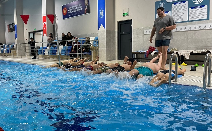 Belediye Başkanı Dr. Halil İbrahim Aşgın, yarı olimpik yüzme havuzunda ilk kulaçların atıldığı kursları ziyaret ederek öğrencilerle bir araya geldi. Çok önemli iki tesisi bugün itibariyle hizmete açmanın mutluluğunu yaşadıklarını dile getiren Başkan Aşgın “Yarıyıl tatilinde 300 civarında öğrencimizin yüzme öğreneceğini ifade etmiştik. Kurslarımıza bugün itibariyle başlamış bulunuyoruz. Yüzme kurslarına müracaat eden öğrencilerimizin hiçbirisini dışarıda tutmadan, hepsine belli bir program dahilinde yüzme öğreteceğiz. Kız ve erkek öğrenciler için ayrı yüzme seansları düzenleniyor. Yarı olimpik yüzme havuzlarımızın kapasitesini en etkin şekilde kullanacağız. Sadece tesisin bulunduğu mahalle halkına değil, tüm Çorum’a hitap edecek. Çocuklarımızın yüzündeki o tebessüm hakikaten bizim de yüzümüze tebessüm olarak yansıyor. Onların mutluluğu bizim için çok önemli. Hedefimiz; bu tesislerimizle beraber Çorum’da yüzme bilmeyenin kalmamasıdır.” dedi.