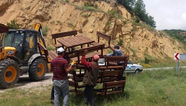 Ortaköy Belediyesi tarafından yeni yapılan mesire yerine kardeş belediye olan Keçiören Belediyesi tarafından 1 tır dolusu malzeme geldi.