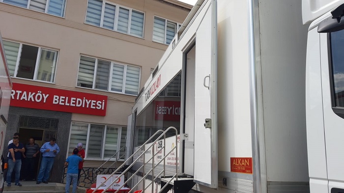 Son Güncelleme: 10 Temmuz 2019 10:50 Gezici Kan Bağışı aracı Ortaköy İlçesinde gönüllü olarak kan bağışında bulunmak isteyen vatandaşlardan kan aldı.