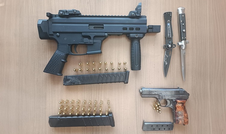 Araç ve çevresinde yapılan aramada, aracın kenarındaki inşaat alanındaki toprak yığınında çanta içinde makineli tabanca, 2 şarjör ve 44 mermi ile taş altına gizlenmiş 2 tabanca ve 16 mermi ele geçirildi. Şüpheliler, ifade işlemleri için polis merkezine götürüldü. (AA)