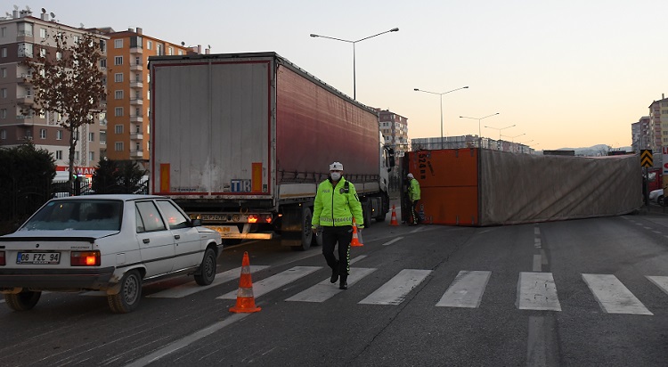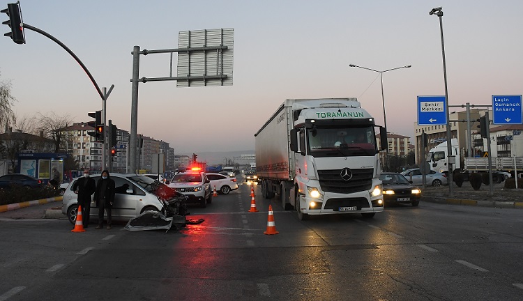 Alınan bilgiye göre, Gaziantep’ten Rusya’ya giden KGFH 2037 yabancı plakalı tır ile 19 ABN 196 plakalı otomobil, Samsun-Ankara kara yolu Çorum Buharaevler Kavşağı’nda çarpıştı.  Çarpışmanın etkisiyle savrulan tır refüje çarptıktan sonra yan yattı. Sürücüler kazayı yara almadan atlattı. Kaza nedeniyle Samsun-Ankara kara yolu bir süre ulaşıma kapandı. İhbar üzerine olay yerine sevk edilen polis ekiplerinin müdahalesiyle yolda ulaşım, Samsun istikametine tek şeritli olarak sağlandı.  Tırın vinç yardımıyla yolun kenarına alınmasıyla yol ulaşıma açıldı.  (AA)