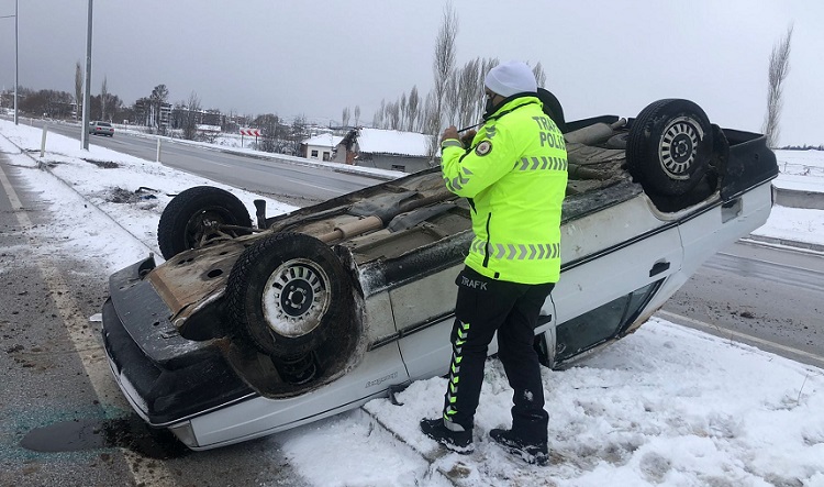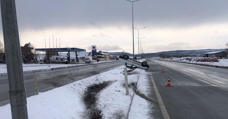 Olay Alaca-Çorum Çevre Yolu ışıklarında meydana geldi. Edinilen bilgiye göre, Cuma Ş.’nin (73) kontrolündeki 19 LN 959 plakalı araç, seyir halindeyken sürücünün direksiyon hakimiyetini kaybetmesi sonucu önce yolda savruldu, daha sonra orta refüje çıkıp takla attı. Kazada araç sürücüsü Cuma Ş. yaralandı. Kazayı görenlerin ihbarı üzerine olay yerine polis ve 112 sağlık ekipleri sevk edildi. Cuma Ş., 112 sağlık ekiplerinin kaza yerinde ilk müdahalesinin ardından Alaca Devlet Hastanesine kaldırılarak tedavi altına alındı. Polis olay ile ilgili soruşturma başlattı.