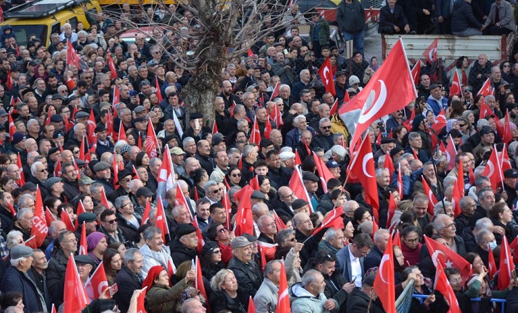 Bir siyasinin, bir siyasi partinin, bir siyasi yapının ya da bir siyasetçinin demokrat olduğu, seçimi kazandığı akşam belli olmaz, o akşam demokrasi nutukları atmak, milleti takdir etmek, milli iradenin önünde saygıyla eğilmek kolay. Önemli olan kaybettiğinde ne yaptığın. İşte Türkiye’ye Cumhuriyeti getiren, sonra çok partili rejimi, sandığı getiren, milletin verdiği göreve razı olan, icabında 47 yıl ikinci parti kalan ama millete saygısını kaybetmeyen siyasetin adı Cumhuriyet Halk Partisi’dir. Kendi seçilince millete methiyeler düzen, ‘milli irade’ diyen ama bir kez ikinci parti olunca darbeye kalkışan, kayyum atayan, iftira eden ve rakibini hapse attıran siyasetin adı da tükenmiş Adalet ve Kalkınma Partisi siyasetidir, tükenmiş Erdoğan’ın siyasetidir” dedi.