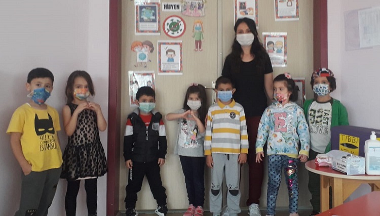 Son Güncelleme: 3 Kasım 2020 10:40 Dünyanın yaşadığı Covid-19 salgını sürecinde hijyenin önemini çocuklara anlatmak ve dikkat edilmesi gereken temizlik kurallarını erken yaşta alışkanlık oluşturarak, farkındalık kazandırmak için İkbalevler Anaokulu Papatyalar Sınıfında öğretmenleri Emine Tülin Eker rehberliğinde eTwinning projesi başlatıldı. Proje çalışmaları hakkında bilgi veren İkbalevler Anaokulu Papatyalar Sınıfı öğretmeni Emine Tülin Eker, “ Bu projede sosyal mesafe kuralı, maske kullanımı ve el yıkama alışkanlığı, vücut temizliği, çevre temizliği, oyuncakların temizliği, besinlerin temizliği gibi konuları ele alarak dikkatimizi hijyen konusunda yoğunlaştırmak ve farkındalık oluşturmak amaçlanmıştır” dedi. Okullarında öğrencilerin Covid-19’dan korunmaları için gereken tüm tedbirlerin alındığını dile getiren Okul Müdürü Canan Gündoğar “Hem yüz yüze, hem de uzaktan eğitime göre planlanan projede, çocuklarda hijyen, temizlik, maske, mesafe ve sağlık konularıyla ilgili davranış kazandırmayı amaçladık” diye konuştu.