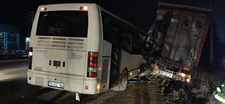 Kaza akşam saatlerinde Çorum-Ankara Karayolu 6. Kilometresinde meydana geldi. Edinilen bilgiye göre 26 BK 209 plakalı TIR sürücüsü Adnan Ö., stepnesinin yerinden çıkması sebebi ile aracını güvenlik şeridine çekerek park etti. O esnada aynı istikamette seyir halinde olan Erdal G.(49)’nin kullandığı 19 ACD 160 plakalı servis otobüsü, sürücünün bir anlık dikkatsizliği sonucu park halindeki TIR’a arkadan çarptı. Kazada otobüs sürücüsü yaralanırken, yaralı 112 ekibinin ilk müdahalesinin ardından Hitit Üniversitesi Eğitim ve Araştırma Hastanesi’ne kaldırılarak tedavi altına alındı. Kaza nedeni ile her iki araçta da büyük ölçüde maddi hasar meydana geldi. Kaza ile ilgili soruşturma başlatıldı.