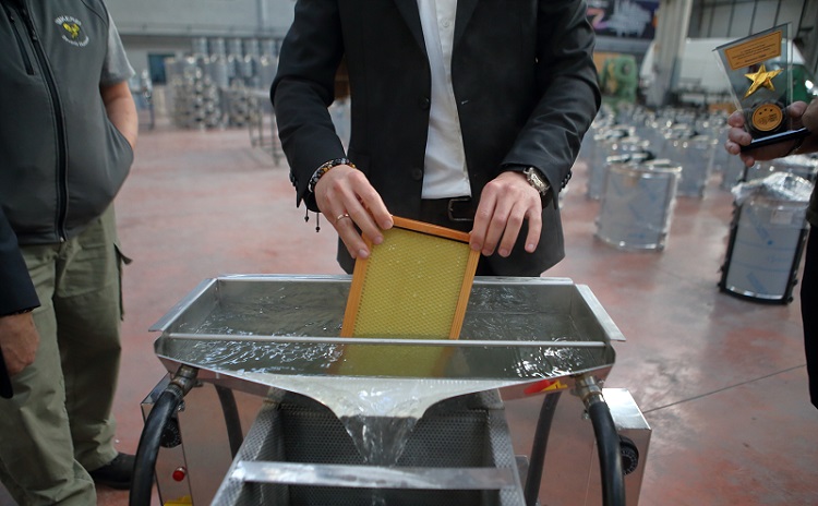 Çorum Organize Sanayi Bölgesindeki fabrikasında arıcılık sektörüne yönelik makine ve ekipman üreten Mehmet Vahdettin Küçükbenli, ihracat yaptığı Almanya ve İsviçre’deki arıcılardan gelen talep üzerine, “Çerçeve Yıkama ve Bal Mumu Geri Dönüşüm Makinesi” üretti. Almanya’dan arıcılar Ralf Kolbe ve Michael Blum ile İsviçre’den Severin Hummel’ın AR-GE desteği verdiği makinenin seri üretimine Çorum‘daki fabrikada başlandı. Üç ülkeden sektör temsilcilerinin işbirliği yaptığı makine, Arıcılık Malzemeleri ve Arı Ürünleri Sanayiciler Derneğince “inovasyon ödülü”ne layık görüldü. Elektrikle çalışan makine, çerçevelerin batırıldığı bölüm, eriyen bal mumunun toplandığı bölüm ve bal mumunun sıvı hale dönüştürüldüğü bölüm olmak üzere 3 hazneden oluşuyor. 100 derece kaynar suyun iki hazne arasında devridaim yaptığı makinede, üzeri petekle kaplı çerçeve ilk hazneye batırılıp çıkartılıyor. Daha sonra eriyerek suya karışan bal mumu, devridaim sayesinde ikinci hazneye aktarılıyor. Burada biriken erimiş haldeki bal mumu filtre yardımıyla makineden alınarak, sıvı hale dönüştürülmek üzere üçüncü hazneye naklediliyor. İşlemler sonucu eriyen bal mumu, geri dönüşüm için petek fabrikasına gönderiliyor. Temizlenen çerçeveler de tekrar kullanılabiliyor. Mehmet Vahdettin Küçükbenli, AA muhabirine, makineyi kısa sürede Almanya, Avusturya, İtalya ve Türkiye’deki arıcılık fuarlarında tanıttıklarını ve bu ülkelerden sipariş aldıklarını söyledi.