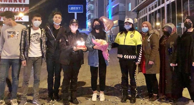 Çorum’un Sungurlu Devlet Hastanesinde görevli Yakup Tunga, yakalandığı korona virüs nedeniyle hayatını kaybetti. Filyasyon ekibinde şoför olarak görev yapan Tunga’nın kızı Sudenaz’ın doğum günü olduğunu öğrenen Sungurlu İlçe Emniyet Müdürlüğü ekipleri, sürpriz hazırladı. Genç kızın oturduğu evin önüne ekip otosuyla giden kadın polisler, megafondan anons yaparak mutlu yıllar diledi. Sürpriz karşısında şaşıran Sudenaz Tunga, kendisi için hazırlanan pastayı üfleyerek hediyelerini aldı. Kendisine doğum günü nedeniyle çiçek de verilen Sudenaz, duygusal anlar yaşadı. Sudenaz Tunga, kendisini unutmayan İlçe Emniyet Müdürlüğü görevlilerine teşekkürlerini iletti. (İHA)