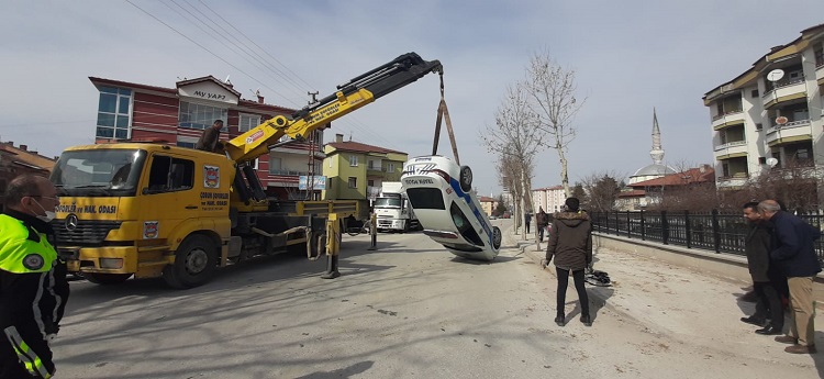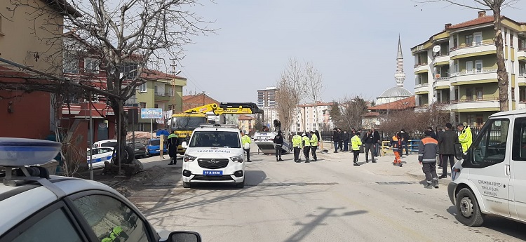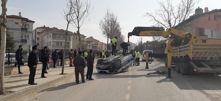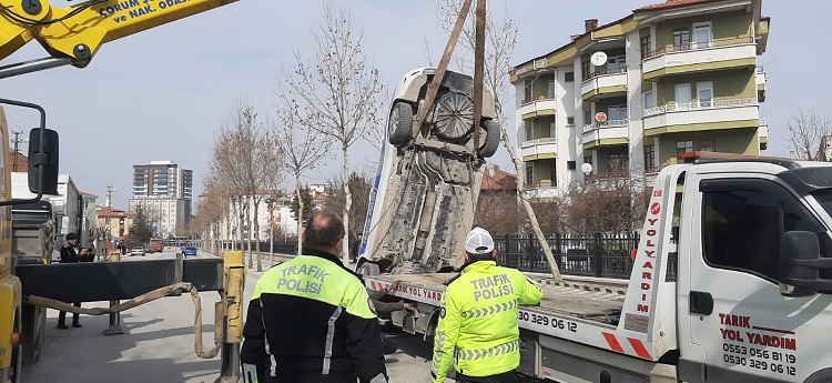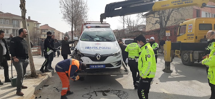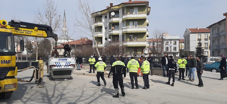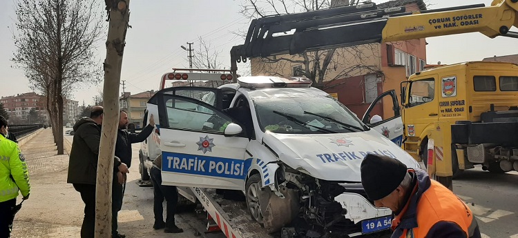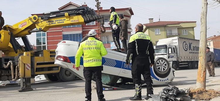 Çorum’da kontrolden çıkan trafik polisi aracı, takla attı. Araç içerisinde bulunan trafik polisleri kazayı hafif sıyrıklarla atlattı. Kaza, Ulukavak Mahallesi Çatalhavuz 17. Sokak üzerinde meydana geldi. Edinilen bilgiye göre; 23 Nisan Kavşağından Pazartesi Pazarı istikametine giden trafik ekibi, ara yolda bir anda önlerine çıkan otomobile çarpmamak için manevra yaptı. Bu sırada yol kenarında bulunan ağaca çarpan polis otomobili, takla attı. Kazada herhangi bir yaralanma ya da can kaybı olmazken, polis aracında maddi hasar meydana geldi. Kaza nedeniyle trafiğe kapanan yol, polis aracının olay yerinden kaldırılması ile tekrar trafiğe açıldı.