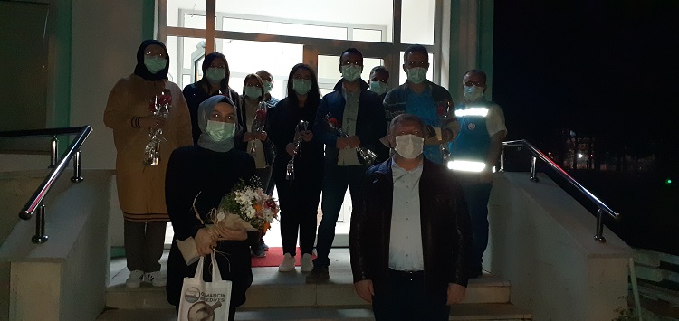 Son Güncelleme: 10 Nisan 2020 09:49 Çorum’un Osmancık İlçesi’nde Koronavirüs salgını nedeniyle çalışmak zorunda kalan sağlık çalışanlarına alkışla destek verildi. Koronavirüse karşı yoğun mesai harcayan sağlık çalışanları için Sağlık Bakanı Fahrettin Koca’nın çağrısıyla başlatılan alkışlı destek, devam ediyor. Etkinlik kapsamında Osmancık Belediye Başkanı Ahmet Gelgör, Başkan Yardımcısı Hüseyin Cebeci, Kadir Eskiadam ile meclis üyeleri ve belediye personeli, yeni tip koronavirüsle (covid19) mücadelede özveriyle görev yapan sağlık çalışanlarına alkış tutarak destek verdi. Belediye binası önünde start verilen destek alkışına tüm Osmancık halkı da balkonlarına çıkarak eşlik etti. Alkışlı destek belediye hoparlöründen tüm ilçeye yayınlanırken tarihi Kandiber Kalesi’nin de ışıkları bu esnada yanıp söndü. Burada yapılan alkışlı desteğin ardından Başkan Gelgör ve beraberindekiler, İlçe Sağlık Müdürlüğü ve 112 Acil Servis Merkezinde sağlık çalışanlarını ziyaret etti. Sağlık çalışanlarına kırmızı karanfil ve çeşitli hediyeler taktim eden Başkan Gelgör; “Bu zorlu süreçte özveriyle görev yapan sağlık çalışanlarımıza teşekkür ediyoruz.” dedi. (İHA)