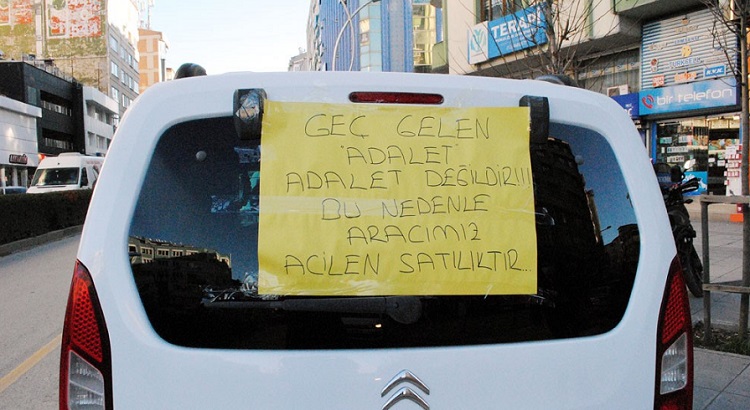 Çok sayıda aracını Adalet Sarayı, Vergi Dairesi ve Gazi Caddesi’ndeki kaldırım kenarlarına çekerek araçların üzerine “Geç gelen adalet, adalet değildir. Bu nedenle araçlarımız acilen satılıktır” yazan iş adamı Serdar Görücü, 8 aydır sürdürdüğü hukuk mücadelesinden bir arpa boyu yol alamadığından dert yandı. Şirketi adına düzenlenen 6.4 milyon liralık sahte senet yüzünden çalmadığı kapı bırakmayan iş adamı, sesini duyurabilmek için böyle bir eyleme imza atmak zorunda kaldığını ifade ederken, senet karşılığında verdiği çekleri ödemek için de araçlarını acil satılığa çıkardığını dile getirdi.