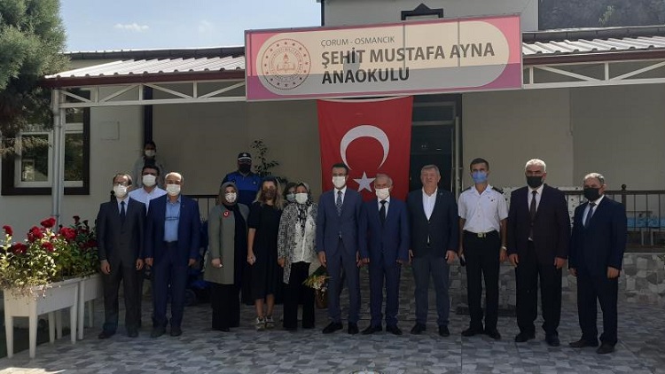 Cumhuriyet Mahallesi’nde bulunan ve 2006 yılında yıldız tip projeye uygun olarak Milli Eğitim Bakanlığı tarafından yapılıp, aynı yıl eğitime başlayan Osmancık Anaokulu’nun yeni ismi Şehit Mustafa Ayna Anaokulu oldu. Okulda anma töreni düzenlendi. Anma törenine Osmancık Kaymakamı Ayhan Akpay, Belediye Başkanı Ahmet Gelgör, Jandarma Komutanı Nuri Uyar, İlçe Milli Eğitim Müdürü İdris Makineci, okul müdürü Tuğba Yüktaşır, kamu kurum ve kuruluşlarının müdürleri ile şehidin annesi Gülsün ve babası Muzaffer Ayna ile yakınları katıldı.