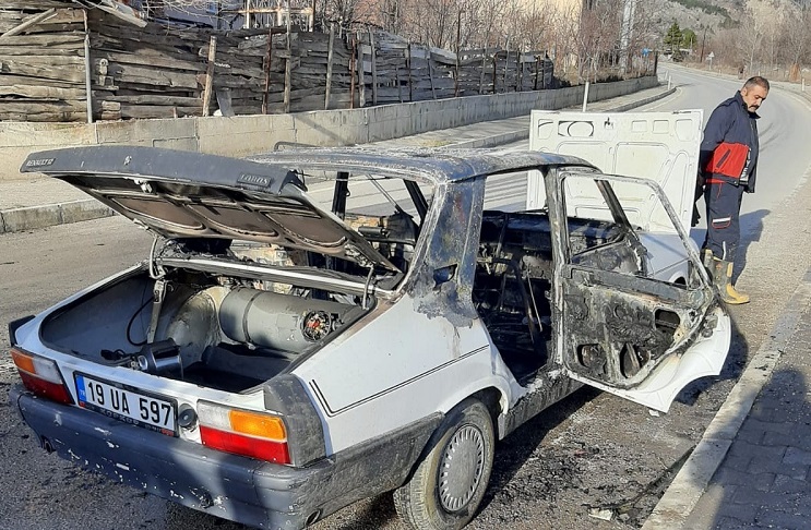 Son Güncelleme: 5 Mart 2020 15:28 Çorum’un İskilip ilçesinde seyir halindeyken alev otomobil yandı. Olay, Mutaflar mahallesinde meydana geldi. Edinilen bilgilere göre, Şaban Akbudak yönetimindeki 19 UA 597 plakalı otomobil Pazarbaşı mevkiine geldiği sıradan aniden alev aldı. Otomobilinden alevler yükseldiğini gören sürücü aracını yol kenarına çekerek itfaiyeden yardım istedi. İhbar üzerine kısa sürede olay yerine İskilip belediyesi itfaiye ekipleri yangına müdahale ederek söndürdü. Yangında araç kullanılamaz hale geldi. Olayla ilgili başlatılan soruşturma sürüyor. (İHA)