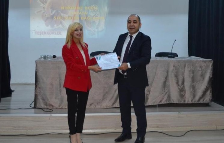 Hitit Üniversitesi Sağlık Bilimleri Fakültesi Öğretim Üyesi Doç. Dr. Gülay Yılmazel, sigara başlama yaşının 10’a düştüğüne dikkat çekerek, dünyada her yıl yaklaşık 8 milyon, günde ortalama 22 bin, saatte ise 916 kişinin sigaradan hayatını kaybettiğini açıkladı. Bilim Söyleşileri çerçevesinde Doç. Dr. Gülay Yılmazel, Buharaevler Mesleki ve Teknik Anadolu Lisesi’nde “Nikotin Bağımlılığı ve Nikotin Bağımlılığı İle Mücadele” konulu konferans verdi. Davranışların, düşünce ve inanışları şekillendirdiğini, bağımlılık davranışı söz konusu olduğunda, yine düşünce ve inançları göz önüne almak gerektiğini dile getiren Doç. Dr. Gülay Yılmazel, “Bağımlılık konusundaki en yaygın inanış, ‘bir kereden bir şey olmaz’ düşüncesidir. Korku ve merakla başlayan süreç, ‘bir kereden bir şey olmaz’ düşüncesiyle devam ettiğinde, döngüye bir adım daha yaklaşılmış olur. Bu duruma bir örnek verecek olursak birey tütüne karşı bir merak geliştirebilir, fakat aynı zamanda ona karşı bir korku da beslemektedir.