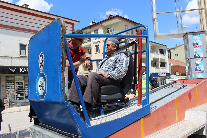 Ankara Trafik Eğitim Araştırma Daire Başkanlığından polis memuru Recep Kurt, İlçe Emniyet Müdürlüğü Trafik Tescil Denetleme Büro Amirliği’nde görevli Baş polis Muhammet Bulut ve trafik polisleri tarafından verilen eğitimlerde sürücülere emniyet kemerinin önemi anlatıldıktan sonra Simülatörde uygulamalı olarak gösterildi.