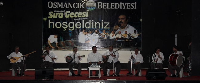 Programda Türk Halk Müziği Sanatçısı Kazım Kiriş’in birlik ve beraberlik mesajları geceye damgasını vurdu. Kiriş’in Mehmetçik’e destek sözleri izleyicileri duygulandırırken, birlik ve beraberlik mesajları da coşkuyla alkışlandı. “Rabbim Birlik ve beraberliğimizi bozmasın, huzurumuzu bozmasın. Ha Urfalıyız, ha Osmancıklıyız. Ha Çorumluyuz, ha Edirneliyiz. Ha Trabzonluyuz, ha Antalyalıyız. Ha Elazığlıyız, ha İzmirliyiz; ama biz hepimiz Türkiyeliyiz. Allah’ım ay yıldızlı bayrağı başımızdan eksik etmesin. Allah’ım bu ülkeyi yönetenlere zarar vermesin. Bizleri birbirimize düşürenleri Allah kahretsin. Hiç merak etmeyin, ne bir santim toprağımız gider ne bu ülkenin bayrağı düşer. Bakmayın hepimiz böyle şalvar giyiyoruz, hepimiz birbirimizden büyük Mehmetçiğiz. Bu ülkenin uğruna, bayrak uğruna canını feda eden Mehmetçiklerimize, polislerimize Allah’tan Rahmet, yakınlarına baş sağlığı diliyorum. Ülkemizin başı sağolsun.” Osmancık Belediye Başkanı Hamza Karataş belediyeciliğin kültür faaliyetlerinin de önemli olduğunu vurgulayarak “Belediyecilik sadece kaldırım, yol, kanalizasyon hizmetlerinden ibaret değil. Bir de belediyeciliğin kültür faaliyetleri var. Hemşehrilerimiz ile bir araya gelelim istedik. Böyle kültürel ortamlarda bulunmak, türkü dinlemek, bunlar da bizim tabi ihtiyaçlarımız. Kazım Kiriş ve ekibi bu akşam bizleri buluşturdu, kendilerine teşekkür ediyorum” dedi. Farklı yörelere ait Türkülerle devam eden Sıra Gecesinde, vatandaşlara çiğ köfte ikramı yapıldı.