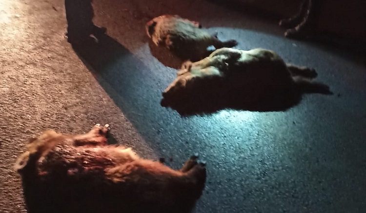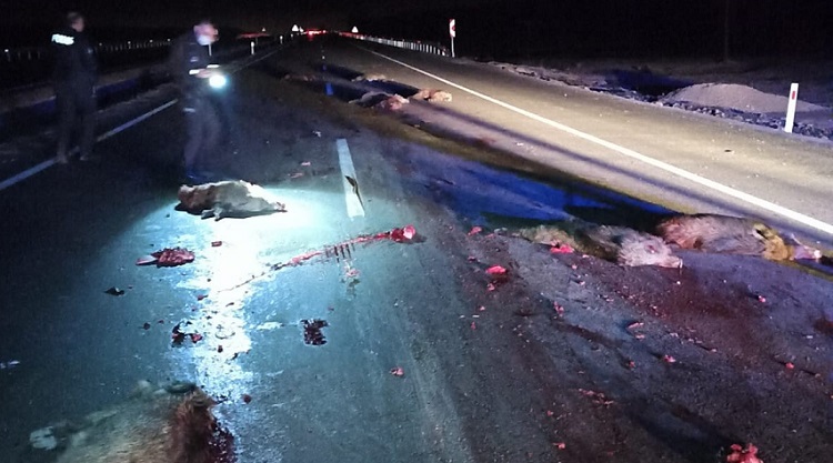 Son Güncelleme: 25 Aralık 2020 11:15 Çorum’da sürü halinde karayolundan geçmeye çalışan 11 domuz, kamyonun çarpması sonucu telef oldu. Kaza, gece saatlerinde Çorum’un Mecitözü ilçesinde meydana geldi. Edinilen bilgiye göre, seyir halinde ilerleyen bir kamyon, karayolundan geçmeye çalışan domuz sürüsüne çarpıp olay yerinden ayrıldı. Çarpmanın etkisiyle telef olan 11 domuz yola savruldu. Kapanan yolda sürücüler, gördükleri manzara karşısında şok oldu. İhbar üzerine olay yerine polis ve karayolları ekipleri sevk edildi. Bir süre yapılan çalışmanın ardından telef olan domuzlar yoldan kaldırıldı. Yol yeniden araç trafiğine açıldı. Kazayla ilgili soruşturma başlatıldı. (İHA)