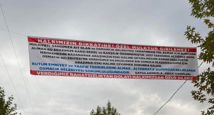 İlçede yaşayan Uğur Asiltürk ve ailesi özel mülkü olduğu gerekçesiyle Gemici, Çay ve Gürleyik mahalleleri ile Kumbaba, Ağıroğlan, Fındıcak köyü ve Dodurga ilçesine ulaşımı sağlayan Kumbaba Köprüsü’nün girişinden, Ergenekon Caddesi kavşağına kadar olan yolu araç trafiğine kapatarak, “Özel mülktür girilemez, halkımıza verdiğimiz rahatsızlıktan dolayı özür dileriz” yazılı afiş astı. Anayasanın Mülkiyet Kanuna istinaden yolu kapattıklarını belirten Asiltürk, “Osmancık Belediyesi 1995 tarih ve 15 sayılı Meclis kararıyla yerimizden köprünün devamına yol açmak için 3 bin 829 metrekare bahçemizden 2 bin 488 kare aldı. Buna karşılık hiçbir bedel ödemedi. 5 kat ticari alan olarak inşaat iznimizi verecekti.