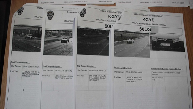 Son Güncelleme: 23 Nisan 2018 12:28 Tokat’ta gırtlak kanseri olan babasını İstanbul’a tedavisi için 2016 yılında otomobili ile götüren kamu kuruluşunda çalışan Özgür Kocaer (38) memleketine döndüğünde gelen radar cezalarıyla şok oldu. Çorum’un Osmancık ilçesinden TEDES ceza makbuzları gelmeye başlayan Kocaer, neye uğradığını şaşırdı. 1’er 2’şer dakika ara ile üst üste yazılan 4 radar cezasının yanı sıra farklı tarihlerde 3 ve 2’şer adet olmak üzere toplam 9 radar cezası ile birlikte 3 bin 392 lira para cezası kesilen Kocaer için Sulh Ceza Mahkemesince dava açıldı.