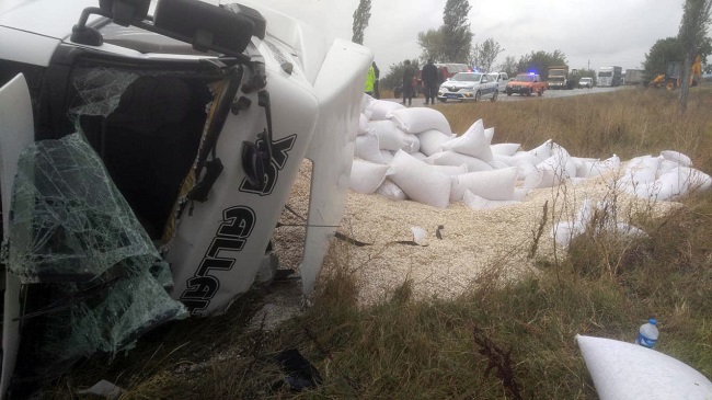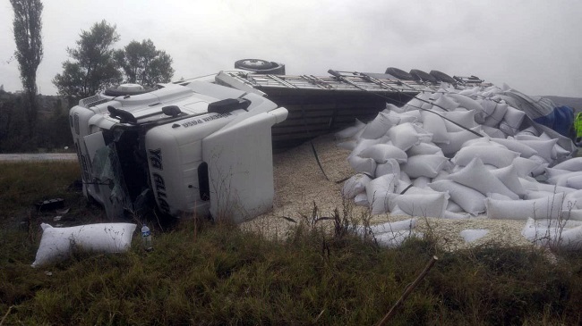 Son Güncelleme: 26 Eylül 2019 16:13 Kaza, Çorum-Mecitözü karayolu 16. kilometresinde meydana geldi. Edinilen bilgilere göre, Mecitözü istikametinden Çorum istikametine seyir halinde olan Şemdin Erdoğan yönetimindeki 16 ACM 355 plakalı çekirdek yüklü tır, Mecitözü kavşağı yakınlarında yağış sebebiyle kayganlaşan yolda sürücünün direksiyon hakimiyetini kaybetmesi sonucu kontrolden çıkarak devrildi. Kaza anında yolda başka bir araç olmaması olası bir faciayı önlerken, devrilen tırda bulunan çekirdekler etrafa saçıldı. Yola saçılan çekirdek kaza yerine çağrılan iş makinesi ile temizlendi. Kaza nedeniyle trafiğe tamamen kapanan Çorum-Mecitözü Karayolu, 2 saat sonra trafiğe açılabildi. Kazada yaralanan sürücü olay yerinde yapılan ilk müdahalenin ardından Mecitözü Devlet Hastanesi’ne kaldırılarak tedavi altına alındı.(İHA)
