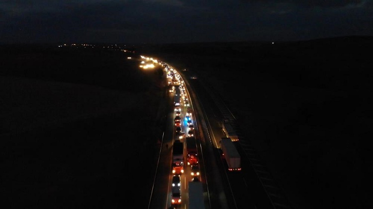 Kazada yaralanan sürücü İ.F.K., itfaiye ekiplerince araçtan çıkartılarak, ambulansla hastaneye kaldırıldı. Tedavi altına alınan yaralının da sağlık durumunun iyi olduğu öğrenildi. Şehirlerarası karayolunun ulaşıma kapanmasıyla yaklaşık 7 kilometrelik araç kuyruğu oluştu. İş makinesi yardımıyla kömür tozları yoldan temizlendi. Yaklaşık 1 saat kapanan yol, tırın yoldan kaldırılmasıyla yeniden araç trafiğine açıldı. Kazaya ilişkin inceleme başlatıldı. (İHA)