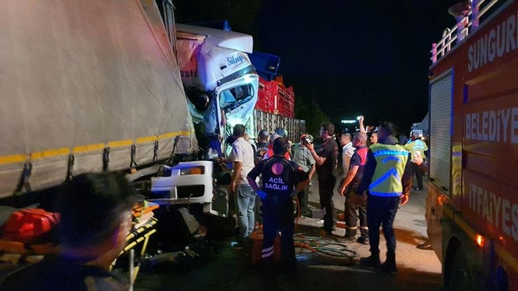 Sungurlu-Çorum karayolunda Yusuf C. yönetimindeki 66 EB 178 plakalı tır, iddiaya göre Kırankışla köyü yakınlarında arızalandı. Sürücü tırı yolun sağına çekti. Bu sırada aynı istikamete seyir halinde olan Selman Keşan idaresindeki 42 CNF 84 plakalı patoz yüklü tır arkadan çarptı. Kazayı gören diğer sürücüler durumu polis, itfaiye ve sağlık ekiplerine haber verdi.