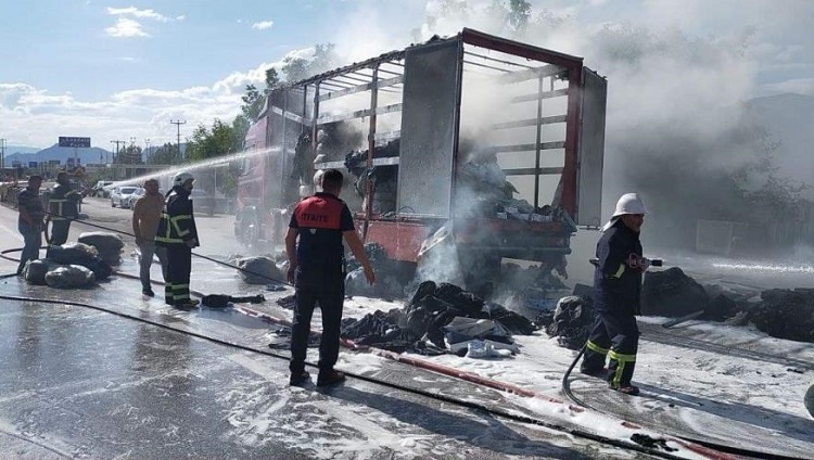 Olay, D-100 karayolu üzerindeki Dereboğazı Köprüsü yakınlarında meydana geldi. Edinilen bilgiye göre, Tokat’tan Çorlu’ya tekstil ürünü taşıyan Sulhan Engin yönetimindeki 05 DS 040 plakalı tırın kasa kısmından dumanlar yükselmeye başladı. Durumun fark edilmesi üzerine uyarılan şoför tırı yol kenarına çekti. İtfaiye ve polis ekiplerine haber verildi. Olay yerine gelen polis ekiplerinin yol güvenliğini sağlamasının ardından itfaiye ekipleri köpüklü su ile yangına müdahale etti. Yangın, itfaiye ekipleri tarafından kısa sürede kontrol altına alındı. Söndürme sırasında yola dağılan tekstil ürünlerini karayolları ekipleri topladı. Olayda her hangi bir can kaybı ve yaralanma yaşanmazken araçta bulunan tekstil ürünlerinin tamamı kullanılamaz hale geldi. Olayla ilgili başlatılan soruşturmanın sürdürüldüğü öğrenildi. (İHA)