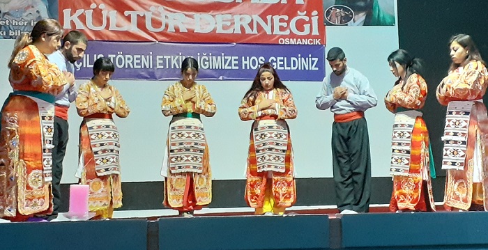 Son Güncelleme: 7 Aralık 2019 09:52 5 Kasım 2019 tarihinde kurulan Osmancık Koyun Baba Kültür Derneği’nin açılışı töreni Belediye Kültür Merkezi’nde gerçekleştirildi. Çorumlu Halk Ozanı Aşık Ali Dursun Sarı’nın seslendirdiği ezgilerle başlayan törende Kerbela’dan günümüze bütün yaşamını yitirmiş mazlum canlar başta olmak üzere Cumhuriyetimizin Kurucu Ulu Önder Gazi Mustafa Kemal Atatürk ve ebediyete intikal etmiş tüm şehitlerimizin manevi huzurunda 1 dakikalık saygı duruşunda bulunuldu. Koyun Baba Kültür Derneği Başkanı Satılmış Özcan, “Geçmiş senelerde yaptığımız çalışmalar neticesinde derneğimizi bu günlere getirdik. Zamanla Koyun Baba’nın güzelliklerini tanıtacağız. Bizlere destek ve yardımcı olmak için ilçemize gelen tüm canlarımıza teşekkür eder aşık niyazlarımı sunarım” dedi. Osmancık Belediye Başkanı Ahmet Gelgör’de, “İşte birliktelik budur. Ayrımcılık bizim mezhebimizde yoktur. Çünkü Türk’üz. Alevi, Sünni, Kürt, Türk ayrım yapan kendine yapar, biz onlardan değiliz. Çünkü anamız Havva, babamız Adem, hepimiz o silsileden geliyoruz. Geçmişini unutan geleceğini teminat altına alamaz şeklinde konuştu. Konuşmaların ardından Çorum Alevi Kültür Merkezi Derneği ve Hacı Bektaşi Veli Kültür Topluluğunun semah gurubu ekibinin kırklar semahı ibadetinin ardından Türk Halk Müziği Sanatçısı Tolga Sağ sahne aldı. Program öncesi Koyun Baba Türbesi’ni ziyaret ettiğini belirten Tolga Sağ, “Aşhaneni mescit yapmışlar, buraya karşı en azından kendi varlığımızı ortaya koymazsak, yarınlara, bizden sonraki kuşaklara aktaracak hiçbir değerimiz, dini kültür mirasımız kalmayacak. Bu yüzden mücadele etmek şart. Ben bize güveniyorum” diyerek etkinliği amaçlayan ve katkı sağlayan herkese teşekkür etti. Törene Osmancık Belediye Başkanı Ahmet Gelgör, siyasi parti temsilcileri, Demokratik Kitle ve Sivil Toplum Kuruluşu Örgütleri ve Karadeniz Alevi Bektaşi Federasyonu Birleşenlerinden, Kalender Çelebi Derneği, Amasya Hamdullah Efendi Yaşatma ve Kültür Derneği, Çorum, Osmancık, Ünye, Fatsa, Merzifon, Gümüşhacıköy Alevi Kültür Merkezi Dernekleri, Piri Baba Kültür ve Dayanışma Derneği, Merzifon Hacı Bektaşi Veli Kültür ve Dayanışma Derneği ve bölge derneklerinin yöneticileri katıldı. (İHA)