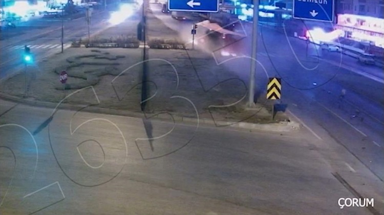 Çankırı, Çorum ve Kırıkkale’de meydana gelen 4 ayrı trafik kazası, Kent Güvenlik Yönetim Sistemi (KGYS) kameralarınca görüntülendi. Emniyet Genel Müdürlüğü Trafik Başkanlığınca paylaşılan görüntülerde, Çorum’da çevreyolu üzerinde seyir halinde ilerleyen tırın kontrolden çıkması sonucu refüje çarparak yan yattığı yer alıyor. Kent merkezinde meydana gelen diğer bir kazada ise Gazi Caddesi üzerinde ilerleyen otomobil, kavşaktan karşı yola geçmeye çalışan hafif ticari araca çarptığı anlar KGYS kamerası tarafından görüntülendi. (İHA)