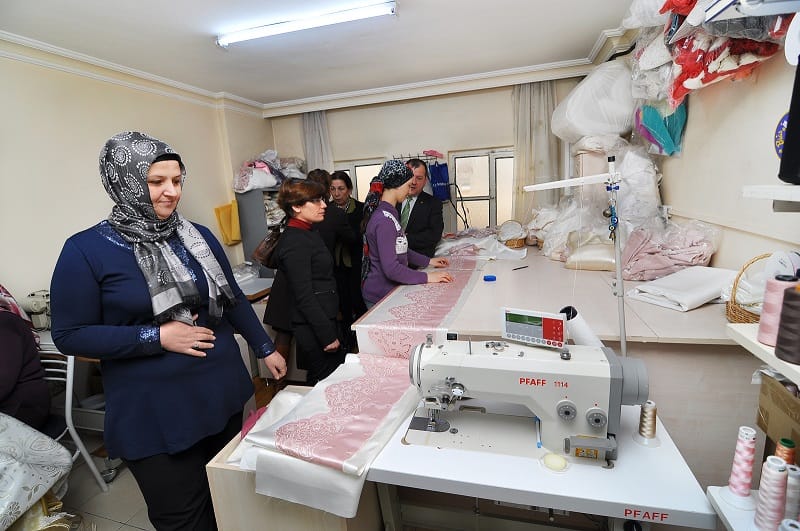 ’35 yaşımdan sonra iş sahibi oldum’ diyen Demirel, “Burada bir çeyiz için ne gerekiyorsa üretebiliyoruz. Bugünlerde, önceden moda olan çeyiz ürünlerini modern motiflerle, kumaşlarla birleştirerek ortaya farklı tasarımlar çıkartıyoruz” dedi.