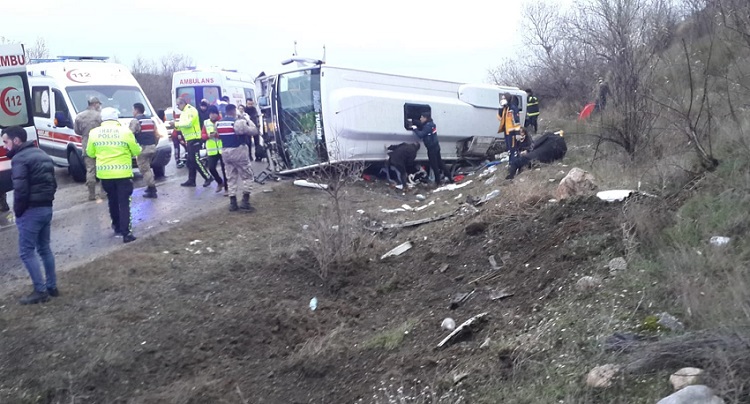 Amasya-Çorum Karayolu’nda tur midibüsünün devrilmesi sonucu 28 yolcu yaralandı. Kazada yaralanan bir yolcu, “Eğlenerek geliyorduk. Araç önce zikzak çizmeye başladı, sonra devrildi” dedi. Ordu’dan Nevşehir Kapadokya’ya geziye giden Doğan Sarı yönetimindeki 52 ABJ 427 plakalı tur midibüsü, dönüş yolunda Amasya’nın Çavuşköyü civarında kontrolü kaybederek devrildi. Kazada sürücüyle birlikte 28 kişi yaralandı. Nevşehir Kapadokya’daki gezilerinin ardından dönüşe geçtiklerini belirten kazazede yolculardan Lale Gürsoy, “Eğlenerek geliyorduk. Güle oynaya. Birden araç zikzak çizmeye başladı. Önce normal sandık. Kontrol kayboldu, devrildik. Sonrasında olanları hatırlamıyorum” diye konuştu.