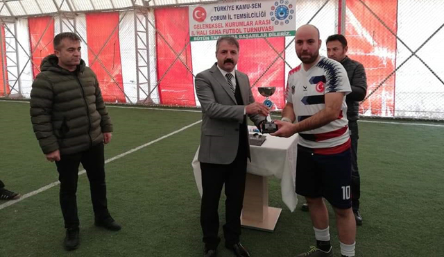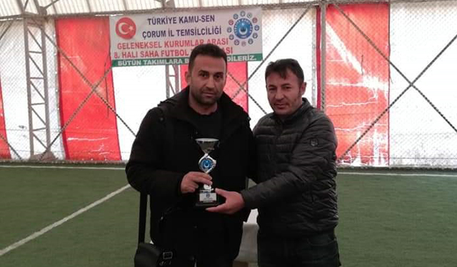 Son Güncelleme: 26 Kasım 2019 20:18 Türkiye Kamu-Sen Çorum İl Temsilciliği’nin kamu kurumları çalışanları arasında bu yıl 8. düzenlenen halı saha turnuvası final maçı ile sona erdi. Turnuvanın birincisi Çorum Kapalı Cezaevi oldu. Final müsabakasında Emin Kırtasiye ile karşılaşan Çorum Kapalı Cezaevi maçtan galibiyetle ayrılarak turnuvanın birincisi olurken, Emin Kırtasiye ikinci, Değişim Etüd ise üçüncü oldu. 19 Ekim de başlayan ve 12 takımın yarıştığı turnuva birlik ve beraberlik içerisinde amacına uygun olarak tamamlandı. Katılan bütün takımlara teşekkür edilirken, dereceye giren takımlara kupaları takdim edildi. Bu sene turnuvaya “BARIŞ PINARI” adını verdiklerini ifade eden Türkiye Kamu-Sen İl Temsilcisi ve Türk Eğitim-Sen Başkanı Selim Aydın; ”Türkiye Kamu-Sen bütün varlığıyla ve dualarıyla şeksiz, şüphesiz, dün olduğu gibi bugün de Mehmetçiğin yanındadır. Yüce Rabbimiz’den dileğimiz, hiçbir Mehmetçiğimizin burnu dahi kanamadan, ayaklarına taş değmeden dönmeleridir. Rabbim Türk askerini daima muzaffer kılsın. Allah muvaffak eylesin. ” Operasyon devam ederken, şehit olan askerlerimize yüce Allah’tan rahmet, ailesi, yakınları ve Türk milletine baş sağlığı, yaralı askerlerimize acil şifalar diliyoruz. Bütün futbolsever arkadaşlarımız ile önümüzdeki yıllarda bulaşmak dileğiyle.. Allah’a emanet olun. Turnuvamızın takibini yapan, Teknik Komite Başkanımız, sendikamızın da eğitim ve sosyal işlerden sorumlu Başkan Yardımcımız Sinan Mol’e, Komite Üyemiz Vahit Kolcu’ya, Komite üyemiz Ali Erol’a emeklerinden dolayı teşekkür ediyor,kutluyorum. Aynı zamanda turnuvamıza başladığımız günden beri fedekarlıklarla maçlarımızı idare eden Hakem Hakan Önder öğretmenimize de yönetim kurulum adına, futbolseverler imiz adına teşekkür ediyorum. Turnuvamızın amacına ulaşması, devamının sağlanması yönünde bizleri motive etmektedir. Geri dönüşler bizleri mutlu etmektedir” dedi.