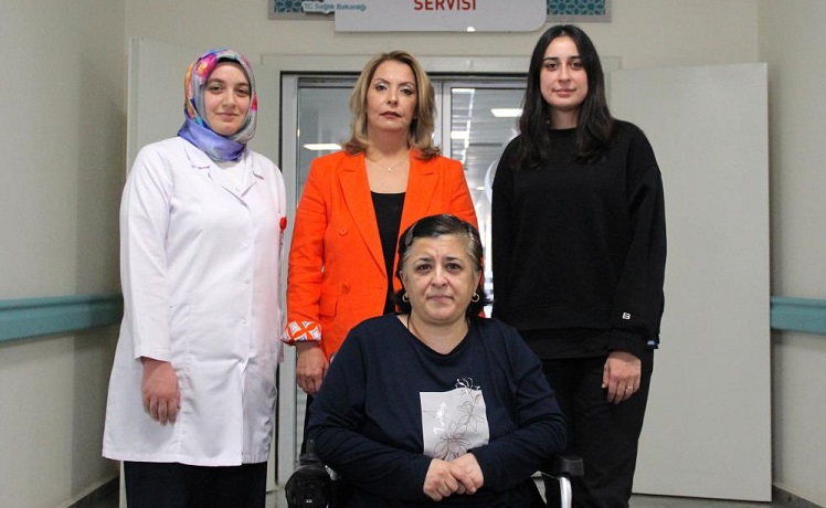 Yaşamış olduğu zorlu süreçleri dile getiren Nalan Erkoç, “2011 yılında kanser teşhisi aldım. Uzun süreli ciddi bir tedavi gördüm. Daha sonrasında 8 yıl sonra yürüme kabiliyetimi kaybetmeye başladım. Uzun süre doktorlara gittim. Çok çeşitli tedaviler gördüm. Ancak hiçbirinde ayağa kalkabileceğim, yeniden yürüyebileceğim söylenmedi. Zaten Onkoloji’den çıktığımda da ‘2,5-3 aylık ömrün kaldı denilmişti. O yüzden çokta üzerine düşmedik uzun süre. Sonra hayatta kalınca yürüyebilmek için çabalamaya başladım. Çeşitli fizik tedavi hastanelerinde fizik tedavi gördüm. Ancak hiçbirinden sonuç alamadık. Süreler kısa olduğu için ayağa kalktım. Tam yürüme aşamasında eve dönmek zorunda kaldım. İlk defa Erol Olçok Hastanesi’nde Ayla Hocam ve ekibi bir tarafından çok ciddi bir tedaviye başladık. Devam ediyoruz. Ayağa kalktım, adımlamaya başladım. Bir cihaz yapıldı, o cihazla yürümeye çalışıyorum. Ümidimi tamamen kaybetmiştim. Yatalak hayata hazır ol, artık yürüyemezsin, sinirlerin bitmiş, ayağa kalkman mümkün değil denilmişti. Bu nedenle ümidimi çok kaybetmiştim ama buraya geldim. Ayla hocam ve ekibi tarafından tedavi sürecine alınınca yeniden ümitlendim. Ben de çok gayret ediyorum onlarda yardımcı oluyorlar” dedi.
