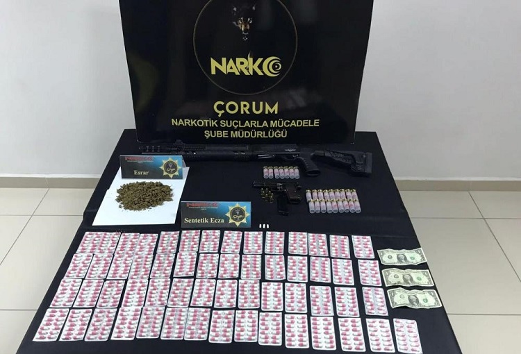 Geçen yıl 321 olaya müdahale eden Çorum İl Emniyet Müdürlüğü Narkotik Suçlarla Mücadele Şube Müdürlüğü ekiplerinin yakaladığı 522 şüpheli hakkında adli işlem yapıldı. Bu kişilerden 443’ü işlemlerin ardından serbest kalırken, 35 zanlı tutuklandı, 44 kişi de adli kontrol şartıyla serbest bırakıldı. Düzenlenen operasyonlarda 7 kilo 728,72 gram esrar maddesi, 411 kök Hint keneviri, 80,93 gram eroin, 2 bin 516 adet Ekstazi hap, 3 kilo 259,53 gram bonzai, 9 bin 791 adet sentetik ecza, 46,80 gram skank maddesi, 2 kilo 457,10 gram metamfetamin, 14 adet tüfek, 22 adet tabanca ve 641 adet fişek ele geçirildi. (İHA)